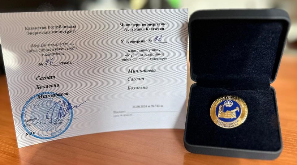 В связи с предстоящим профессиональным праздником «Днем работников нефтегазового комплекса Республики Казахстан» поздравляем Миннибаеву Сагадат Бохаевну, главного инженера ТОО «VSEngineering», с высокой государственной наградой - нагрудным знаком «Мұнай-газ саласының еңбек сіңірген қызметкері».