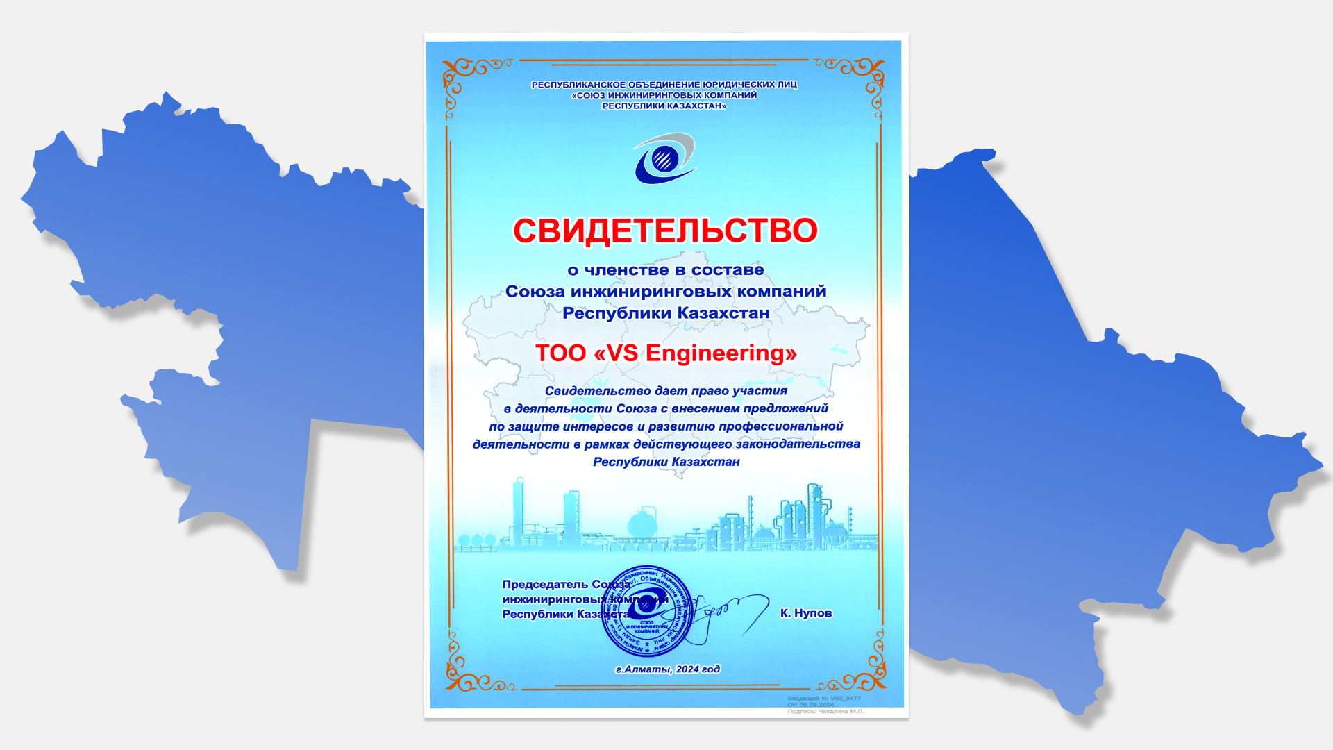 ТОО «VSEngineering» вошло в состав Союза инжиниринговых компаний Республики Казахстан.